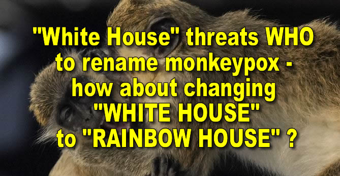 “White House” threats WHO to rename monkeypox – what about “WHITE HOUSE” to “RAINBOW HOUSE”