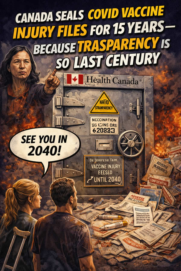 In one of the most eyebrow-raising bureaucratic moves in recent memory, Health Canada has quietly decided to seal millions of pages of COVID vaccine injury and adverse reaction records for the next 15 years. That’s right — a massive archive of information about how Canadians’ bodies responded to pandemic-era vaccines is now under lock and key until well into the 2040s. If you were hoping for openness, accountability, or basic answers, you might want to check another cupboard — this one is empty.