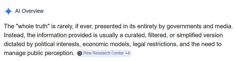 March 15, 2026 by RushHourNews The whole truth told to people by GOVERNMENTS and MEDIA The whole truth told to people by GOVERNMENTS and MEDIA EVEN AI has its own version: