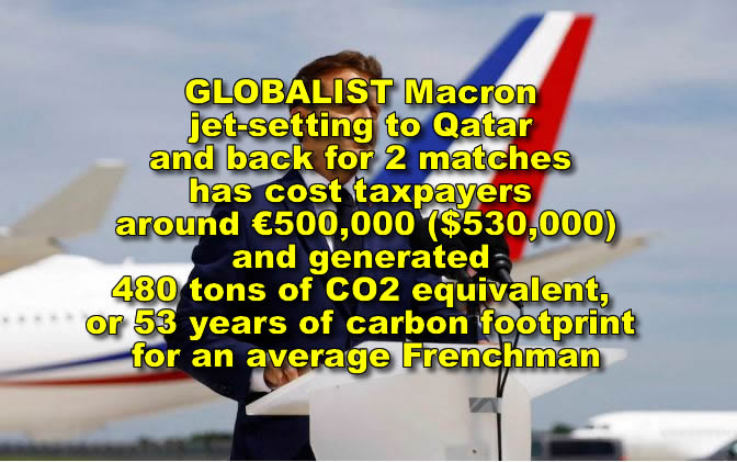 December 19, 2022 by RushHourNews - 0 comments Globalist Macron jet-setting to Qatar and back for 2 matches has cost taxpayers around €500,000 ($530,000)