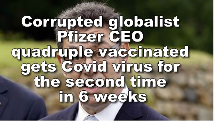 September 25, 2022 by RushHourNews - 0 comments Corrupted globalist Pfizer CEO quadruple vaccinated gets Covid sick for the second time in 6 weeks