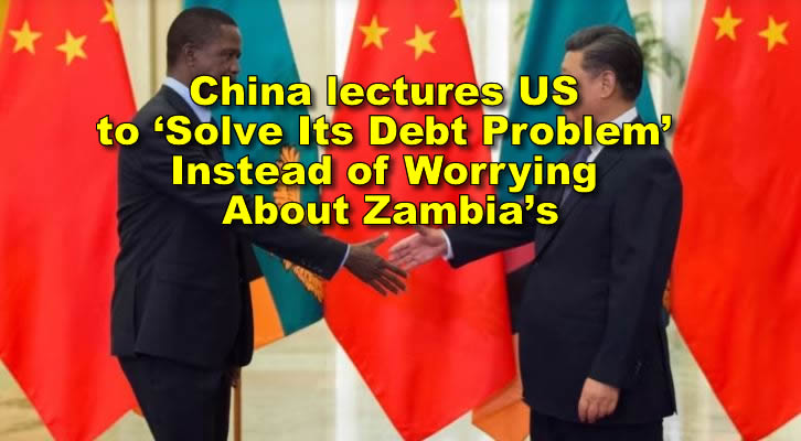 January 24, 2023 by RushHourNews - 0 comments China lectures US to ‘Solve Its Debt Problem’ Instead of Worrying About Zambia’s